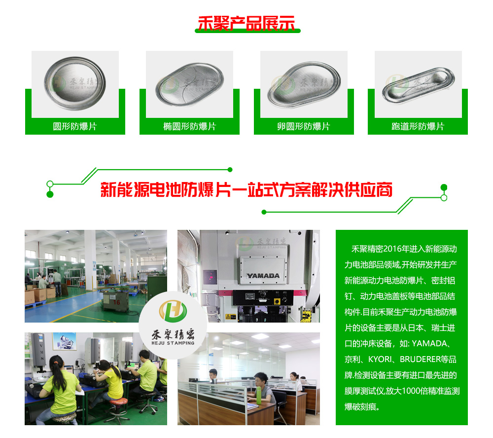 动力防爆片又称动力电池防爆阀或动力电池帽,是锂离子动力电池的关键部件。正常运行时,能快速通风;当气体达到防爆点临界值时,瞬间与外界相通,大量气体排出,可迅速释放空腔内部的强大压力,避免或减少爆炸,是一种抗强超声波冲击,能有效防止电池爆炸的金属薄片。